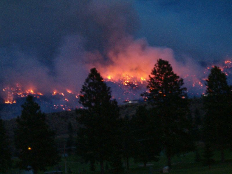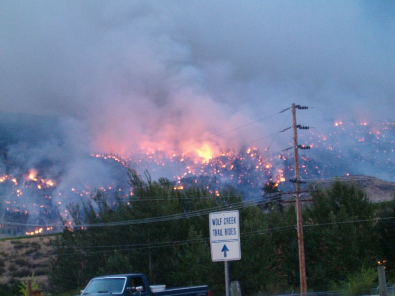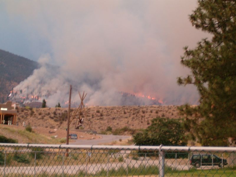 I could see the smoke on my way home from work, and as I pulled into town I could see how bad it really was. I immediately drove home grabbed my camera, climbed onto my motorcycle and headed out for a closer look. I took several shots from various locations along Black Sage Road and Tuc-ul-nuit Drive (keeping out of the way of emergency vehicles), then returned home to check them out. Out of all the pictures I had taken, there were a few that I thought were quite good, so I sent them off to a few of the local and provincial papers. One was picked up by the Province newspaper in Vancouver.My first real published photo. Here it is. Click on it to read the entire article (not writen by me) in Adobe PDF format. You will need Acrobat Reader to view it. Also some of the other pics are at the bottom of the page. Just click on them to view a larger image.